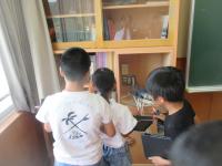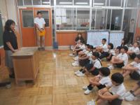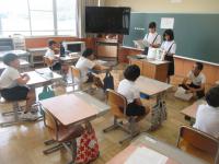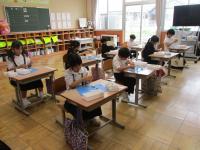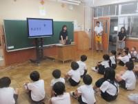 5・6年生が、東谷口地区の山田さんと下荒さんから戦時中のお話をききました。戦時中の食べ物や遊び、暮らしの様子などについて、子どもたちは真剣にメモを取りながら聞いていました。5・6年生は夏休みの平和集会で、他の学年へと伝える予定です。