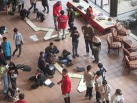 東谷口小学校から6名の選手が参加し、各国の選手と一緒に競い合いました。結果は予選敗退でしたが、楽しみながらマシーンを調整して大会に挑んでいました。