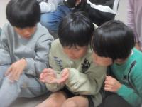 最後に児童が隠したmicroビットをmicroビットのセンサーを使って探す宝探しゲームをみんなで楽しみました。