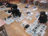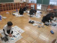 書き初め大会がありました。児童たちは、冬休みに練習してきた成果を発揮しようと、一筆一筆真剣に取り組んでいました。
