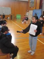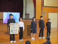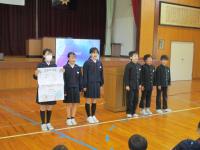 朝の登下校などでお世話になっている学校110番ボランティアの方に感謝とお礼を伝える会がありました。児童たちは、ボランティアの方々に感謝を伝えていました。