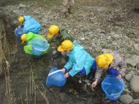 3・4年生は12月からヤマメの飼育を始め、3~4㎝ほどに育ったヤマメを動橋川に放流しに横北神社まで行きました。