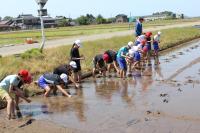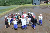 5・6年生が、地域の田んぼの先生にご指導いただき、田植え体験をしました。