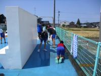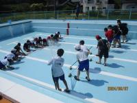 4・5・6年生で、プールサイドやプールの中をブラシで掃除することができました。
