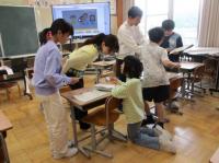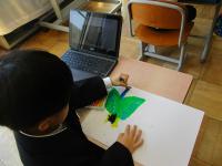 1年生は図工の学習。学習用端末を使って調べ、イメージを広げています。