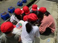 1年生はアサガオのたねをまきました。先生の話をしっかりと聞いて、自分のことは自分でできました。すばらしい!!