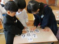 「これってどういう意味なん?」友達に並べ方の秘密を確認しながら、数字の並び方の面白さを感じてくれたようです。「きまりみつけ」は算数の面白さの一つです。こんな学習を通して算数を好きになってほしいと思っています。