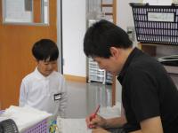 学校生活にもずいぶんと慣れてきた1年生。生活科では、「せんせいとなかよしだいさくせん」の学習をしています。東谷口小学校にはどんな先生がいるのかな?自分の名刺を持って、いろんな先生のサインをもらいに出かけています。難しいセリフ(挨拶等)を一生懸命覚え、ドキドキしながら校内を回っている様子がなんともかわいいです。