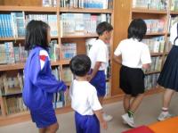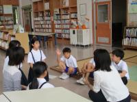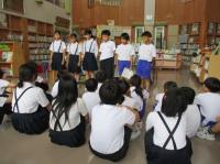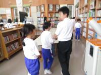 1年生はひらがな50音の学習が終わり、濁音の学習が始まりました。授業の終わりに「てんてんきょうだい」という絵本の読み聞かせをしました。「てんてんきょうだい」がいろんな言葉にてんてんを付けて違う言葉をつくって楽しむお話です。1年生の子どもたちも大喜び。「てんてん」が大好きになったようです。自分の名前に「てんてん」をつけて楽しむ子も。帰りには「ごうぢょうぜんぜい、ざようなら~」と言って元気に下校していきました。かわいい姿に癒されましたよ。