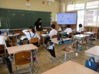 今年、東谷口小学校は全校で音楽会に参加します。全校で出場するとなると、合同練習をする必要があります。これが結構大変です。そこで、まずは学級ごとに練習しています。学習用端末をつかって、お手本動画を各クラスに配信して練習しています。全校練習に向けて、一生懸命練習している姿がとてもかわいいです。