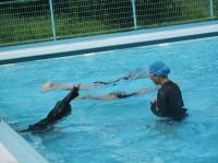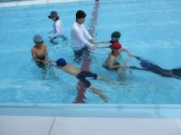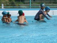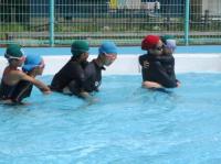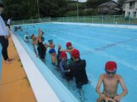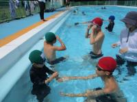 今日は、1、2年生と5、6年生が一緒にプールにはいりました。はじめは、5、6年生が1、2年生をおんぶしてプールをまわってくれました。深いところ(プールの真ん中あたり)はこわく感じる1、2年生もおんぶしてもらえば、安心です。とても嬉しそうでした。そのあとは、5、6年生がけのびのお手本を見せてくれました。そして、1、2年生一人一人に合わせて、もぐり方やバブリングの仕方、けのびの仕方を教えてくれました。5、6年生のおかげで、みんなとても上手になりました。そして、最後はお楽しみタイム。みんなで自由になかよくプールを楽しみました。