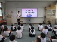 いよいよ明日からみんなが楽しみにしていた夏休みが始まります。子どもたちには、夏休みのめあては「みんなが笑顔の夏休みを自分でつくる」と話しました。そして、楽しい夏休みをつくるための技を3つ紹介しました。