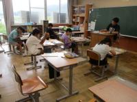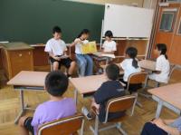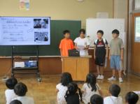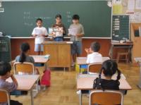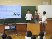 平和集会を行いました。1学期、5・6年生が総合的な学習の時間に「平和の大切さや戦争のおそろしさについて考える」ことを狙いとして、戦争や平和について学習しました。それを全校みんなに発表してくれました。そのあと、各クラスで戦争に関する本の読み聞かせをしてくれました。「みんなが笑顔の世界を みんなでつくる」ために、自分たちには何ができるのか、一人一人が考えるきっかけになってくれたらいいなと思っています。