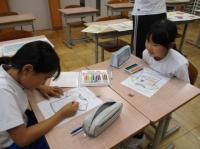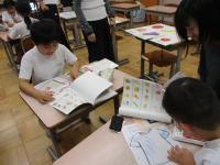 3年生の外国語の授業を見に行くと、友達が好きなものをいっぱい描いたTシャツをつくるために、「What sprorts do you like?」と楽しそうに、しかも上手に、英語で質問したり答えたりしていてびっくりしました。自分たちの頃は、中学1年か2年で勉強した構文を小学校3年生が使っています。こうやって、小さなころから英語に慣れ親しむことで、英語へのハードルが低くなるんだろうなあと思いました。