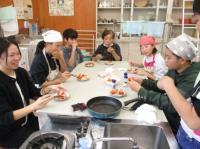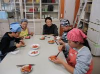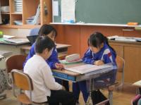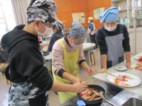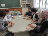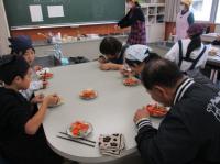 今日は、5,6年生の調理実習がありました。今回もたくさんの町の先生にお手伝いいただきました。野菜の切り方や調理の仕方等、教科書にはのっていないコツもたくさん教えていただきました。出来上がったあとは、一緒においしくいただきました。今までたくさんお世話になったお礼に、子どもたちがミシンでつくったコースターをプレゼントしました。