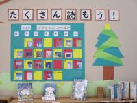 そして、もうすぐ12月。図書室もすっかりクリスマスムード。クリスマスにちなんだ本がずらりとならんでいます。本を読みながら、クリスマスのカウントダウンをするのも楽しそうです。