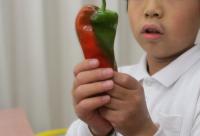 昼休み、4年生が校長室にやってきました。「はい!2色ピーマン!1個やけど。」とピーマンを差し出してくれました。12月だというのにまだピーマンが採れるとのこと!!(やっぱり今年はあったかいのですね。)そしてなんと緑と赤の2色、クリスマスカラーのピーマンです。12月にピッタリではありませんか。食べるのがもったいないくらいです。(でも、新鮮なうちに食べます☻)ありがとね。