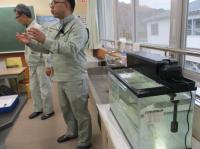 東谷口小学校では、石川県内水面水産試験場のみなさん、動橋川漁業協同組合のみなさんのご協力のもと、ヤマメ飼育に取り組んでいます。今日は、ヤマメや飼育方法についてお話を聞いた後、ヤマメの卵を観察し、水槽に卵を入れました。この後、子どもたちが大切に飼育し、3月には稚魚を動橋川に放流する予定です。放流したヤマメの中で、川でうまくエサをとれなかったものは、エサを求めて海に行き、サクラマスとなるそうです。そして、大きくなったサクラマスは動橋川のにおいをたどって戻ってくるそうです。今のきれいな川を保っていないと、川のにおいがかわってしまってサクラマスが戻ってこれないとのこと。だから、動橋川漁業協同組合の方たちは、川の環境保全に取り組んでいると話してくださいました。子どもたちには、この貴重な体験を通して、命の大切さや環境保全の大切さを学んでくれることと思います。