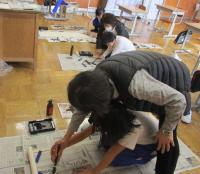 12月に入り、書写の時間には、書き初めの練習が始まりました。みんな静かに真剣に練習に取り組んでいます。3年生は、初めての毛筆での書き初めです。大きな筆に四苦八苦しながらも、お手本とそっくりに書こうと一生懸命がんばっていました。