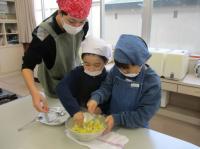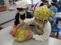 1,2年生が、畑で収穫したさつまいもを使ってスイートポテトづくりをしました。グループごとに役割分担をして、力を合わせて作業していました。自分たちでつくったスイートポテトは、とてもおいしかったようで、みんなとびっきりの笑顔でした。