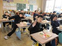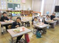 給食が始まりました。今日は、お雑煮・ぶり・なます、お正月メニューでした。お正月メニューが苦手な子もいたけれど、みんなで食べる久しぶりの給食に、みんなにこにこ。おなかいっぱいになりました。