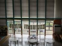 東谷口小学校では、地域のみなさんのご尽力により毎年左義長を行っています。それに合わせて、子どもたちが今まで練習を重ねてきた書き初めを、保護者の方が綴じてくださいました。それをマルチホールにかざりました。