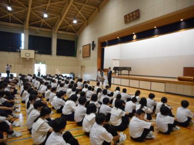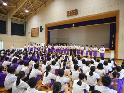 10月2日、第3回評価テスト1日目の日程の後、夏休み作品展や新人大会等の表彰が披露されました。おめでとうございます。