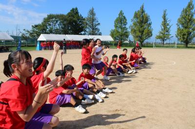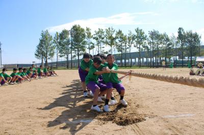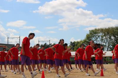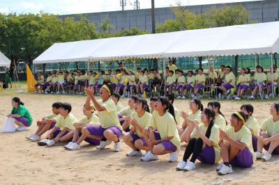 9月17日、晴天の元、本校の運動会が開催されました。今年は赤、青、黄、緑の4つの団それぞれ1年生から3年生まで1クラスずつで構成され、どの団も3年生の応援リーダーが中心となって競技、応援に励みました。同じチームの仲間と大きく一歩成長することができた1日でした。