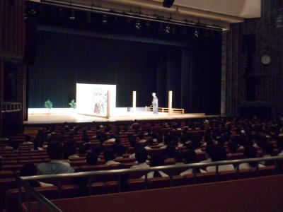 午前中、松任文化会館で催された白山市狂言教室に1年生が参加しました。演目は「柿山伏(かきやまぶし)」と「附子(ぶす)」です。伝統文化を堪能することができました。