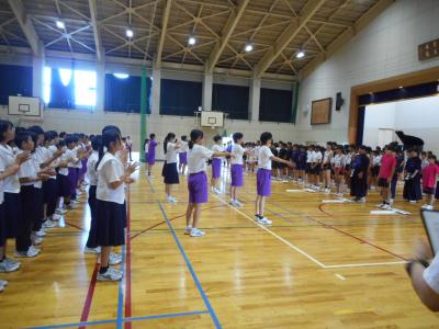 明日から始まる運動部新人大会の激励会がありました。先日の運動会で応援リーダーを務めた3年生が力強い応援で1・2年生を激励しました。