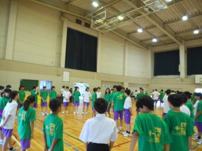 今日は運動会の団ごとに分かれて結団式をおこないました。団長も緊張していたようですが、とても楽しそうでした。できあがった団旗を披露したときは「すごい!」等、感嘆の声が上がっていました。