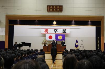 3月15日(土)第43回卒業証書授与式が行われました。99名が光野中を卒業しました。少し寒い日でしたが、緊張感の中にも穏やかな空気の流れる式となりました。