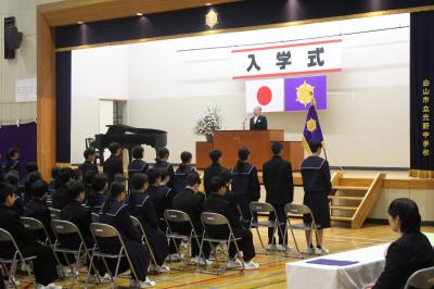 4月7日、第44回入学式が行われました。天候にも恵まれ、暖かな1日となりました。校長先生からは「前向きな姿勢、明るい笑顔を大切に『やればできる!』『やったらできた!』という経験を積み重ね、自分に自信を持つことができる中学校生活にしていってほしい」というあいさつがありました。