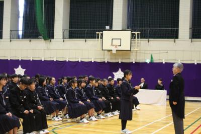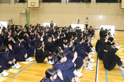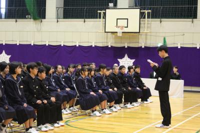 今日は来年度の生徒会役員候補の演説会が行われました。「元気なあいさつができる学校に」「思いやりの心があふれる学校に」と、思いのこもった公約を述べる姿が見られました。頼もしいですね。