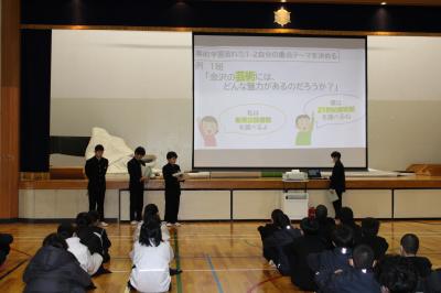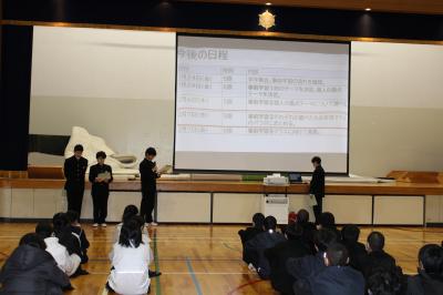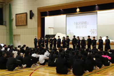 1年生は来年度5月に金沢研修を行います。1月24日はその事前学習に向けて、実行委員会が説明を行いました。教室でも実行委員が中心となって活動を進めました。