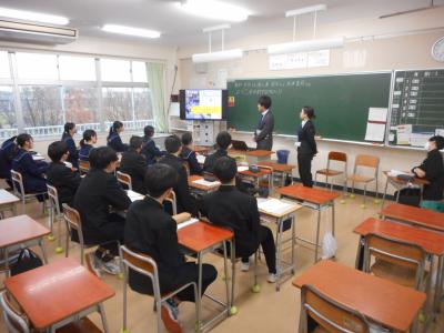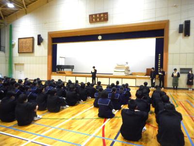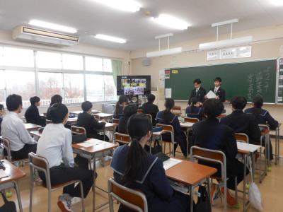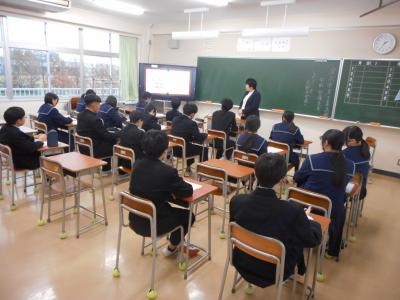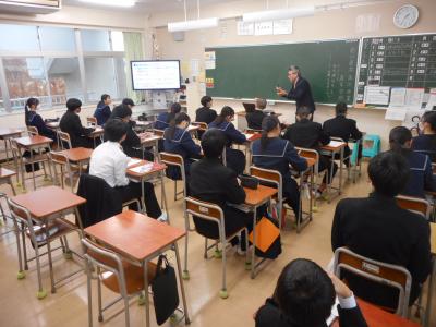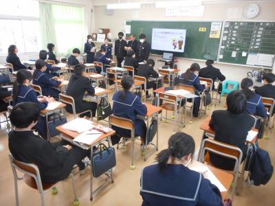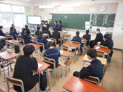 2年生の進路指導の一環として、高校の先生方(生徒)に来ていただいて直接お話をうかがう会を開きました。中学校卒業後の進路について考える良い機会になりました。翠星高校、野々市明倫高校、金沢商業高校、金沢桜丘高校、金沢市立工業高校、金沢高校の皆さん、ありがとうございました。
