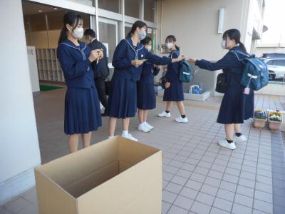 また、ユニクロやGUを傘下に持つファーストリテイリングがおこなっている服のチカラプロジェクトに本校も取り組んでいます。不要になった子供服を集めています。今年はどれくらい集まるでしょうか。