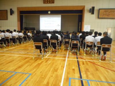 11月15日、1年生の非行防止教室がおこなわれました。白山警察署の方から中学生が巻き込まれやすい犯罪などの事例を紹介していただきました。スマホを通してSNSを使用する生徒も多いですが、リスクの可能性を十分に理解し、家族で共有してほしいと思います。