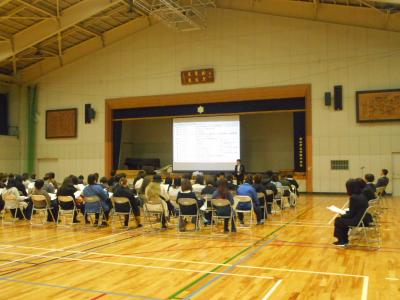 いよいよ3年生の進路選択の時期が近づいてきました。出願の方法や各学校のコースなど、毎年少しずつ変更になっています。多くの保護者が参加されました。