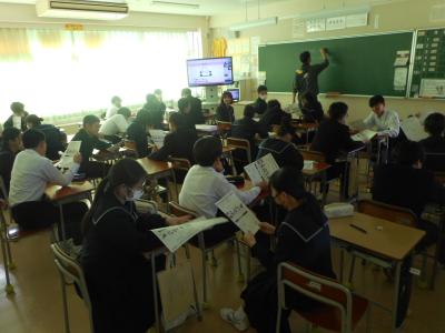 11月8日(金)、NTTドコモ、人権擁護委員の方によるスマホ・ネット安全教室を本校で行いました。NTTドコモの方の講座はリモートで行いましたが、スマホの使いすぎやSNSのリスクや管理する方法について学びました。人権擁護委員の方からは、中学生の人権作文動画を通して、人の気持ちを大切にすることを学びました。保護者の方も参加し、一緒に考えてくださいました。