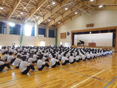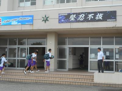 8月30日、9月2日、3日の3日間、本校教員とPTAの有志で、交通安全指導、玄関あいさつ運動を行いました。生徒達が毎日楽しい気持ちで安全に登校できることを願っています。毎日、近くの幹線道路沿いに立ってくださっている見守り隊の方にも感謝です。