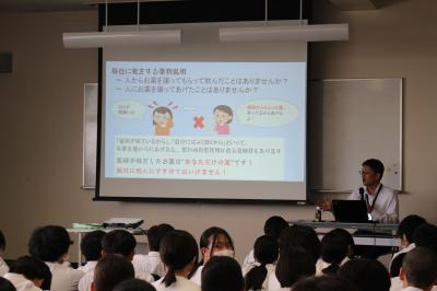 市販薬を規定量よりも多く服用する過剰摂取が若い世代にとても多いことや、大麻、覚醒剤などのドラッグはたった1回でも大きく人格を破綻させてしまうことなど、わかりやすくお話しくださいました。