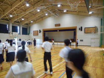 今日は授業中、地震が起きて授業者が誘導して避難するという避難訓練を行いました。
