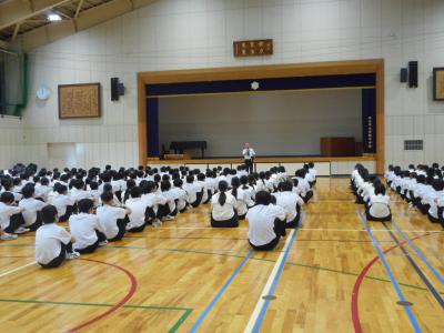 校長先生は「3つの安全行動」を実践することの大切さを確認されました。