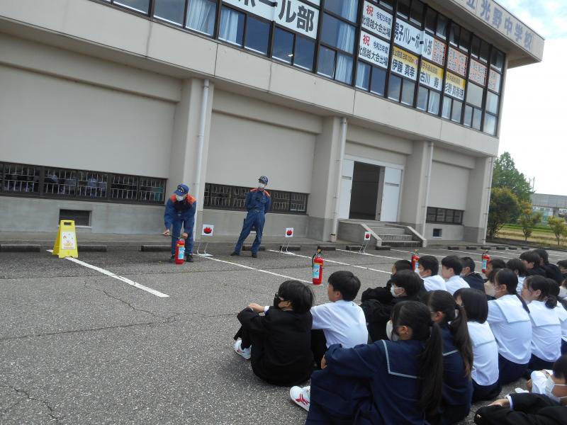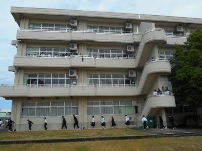 消防署の方から「避難の態度がとても良かった。大切なのは自分の命は自分で守ること。中学生の行動が大事である。東日本大震災の時に、中学生が逃げるのを見て地域の大人達が逃げて命が救われた」という講評をいただきました。