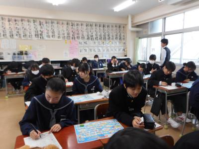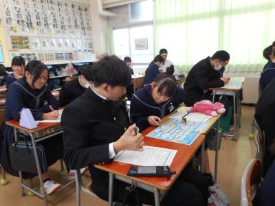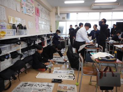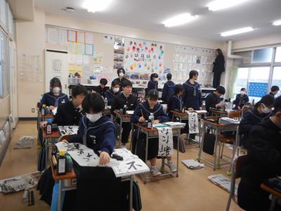 本年度最後の学期が始まりました。始業式の後、それぞれの教室で競書会がおこなわれました。皆、丁寧に集中して取り組んでいました。