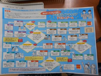 すごろくの中には「進路選択で迷ったら?」「育児と仕事の両立は?」といった身近なテーマが盛り込まれており、生徒たちは楽しみながらも真剣に考えていました。最後には「なぜその選択をしたのか」をふり返りシートに記入し、自分自身を見つめ直す時間も持ちました。