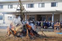 富永公民館、富永まちづくり推進協議会の方々による左義長に、全校児童で参加しました。天候が不安でしたが、ちょうど会が始まる前に晴れました。