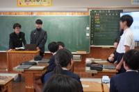 昨年度瑞穂小学校を卒業した羽咋中学校1年生2名が来校し、6年生に中学校の学習や生活の様子をプレゼンテーションで紹介してくれました。