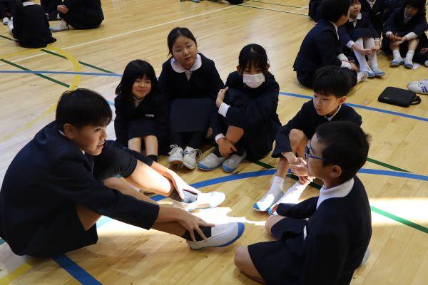 1年生は、全先生方が集まる研究授業で体育「ボールゲーム」の「四角ドッジボール」などにしました。ボールを投げる「うまくあてる」ポイントを意識して、ゲームをみんなで楽しみ、「技」を考える素晴らしい授業でした。元気の良さ、集まりや話を聞く態度、グループでの話し合いなどとても成長した姿を見せてくれました。見られた先生方から、多くのお褒めの言葉をいただいていました。